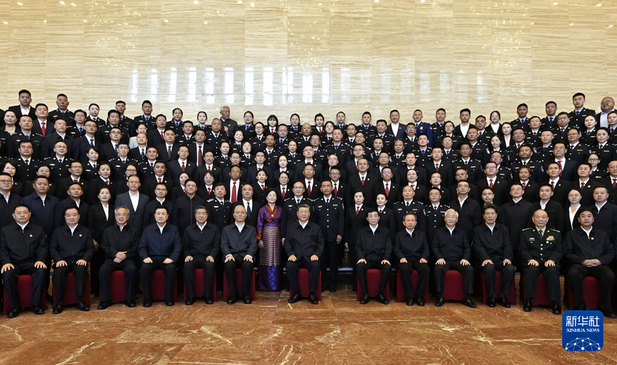??8月20日下午,中共中央总书记、国家主席、中央军委主席习近平在拉萨亲切接见西藏自治区政法干警代表,并同大家合影留念。新华社记者 殷博古 摄