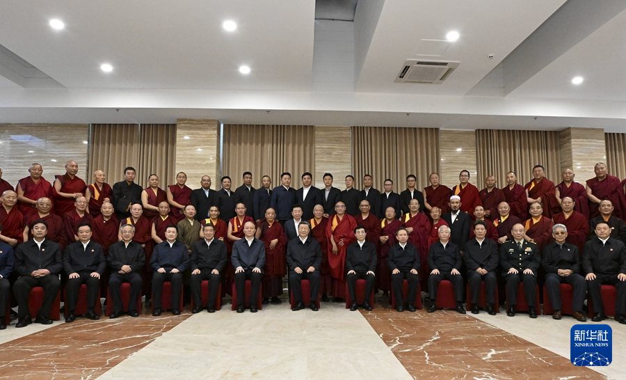 ??8月20日下午,中共中央总书记、国家主席、中央军委主席习近平在拉萨亲切接见西藏自治区宗教界爱国人士和寺管会干部代表,并同大家合影留念。新华社记者 李响 摄