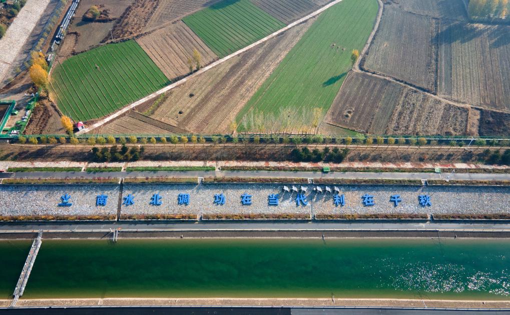 位于京冀交界处的南水北调中线工程总干渠(2024年11月14日摄,无人机照片)。 新华社记者 陈钟昊 摄